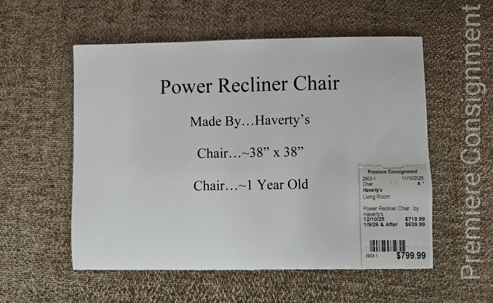 Power Recliner Chair...by Haverty's... 38" x 38"