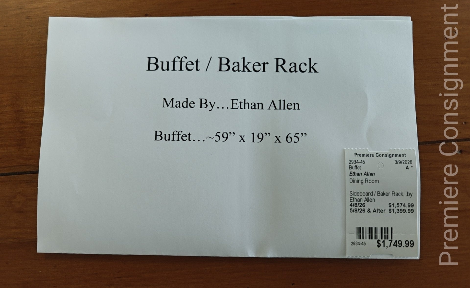 - Brand = Ethan Allen